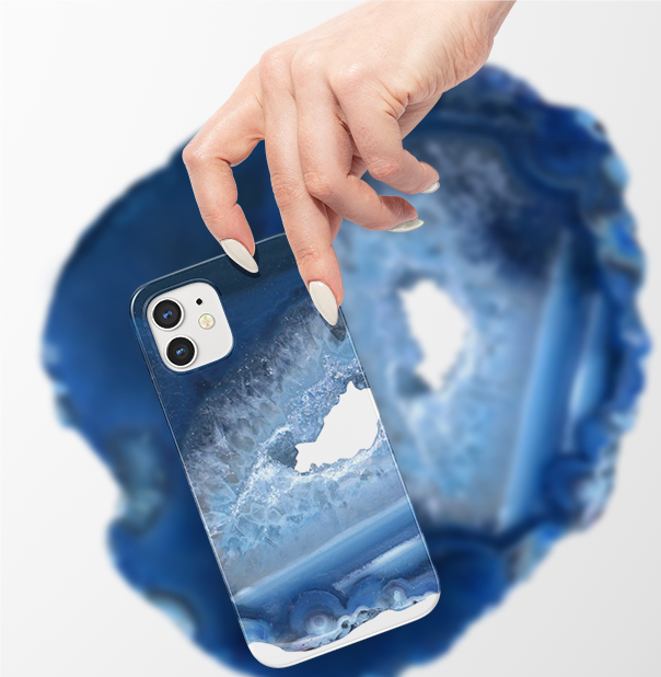 石のない石屋、IIRIDOが提案する天然石柄スマホケース。普段身につけているスマホを石柄にすることで、まるで大きな天然石を持っているかような印象に。